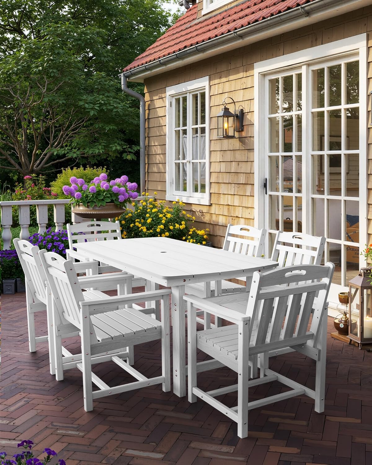 7-Piece Outdoor Patio Dining Set with Table & 6 Chairs, White